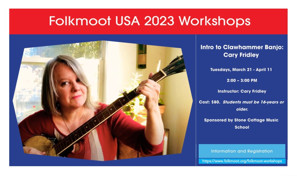 Please join us for 4 Tuesdays in beautiful Waynesville, NC for my new Intro to Clawhammer Banjo workshop. For more information, visit Folkmoot USA’s website here: https://www.simpletix.com/e/folkmoot-studios-workshops-introduction-to-tickets-124774.