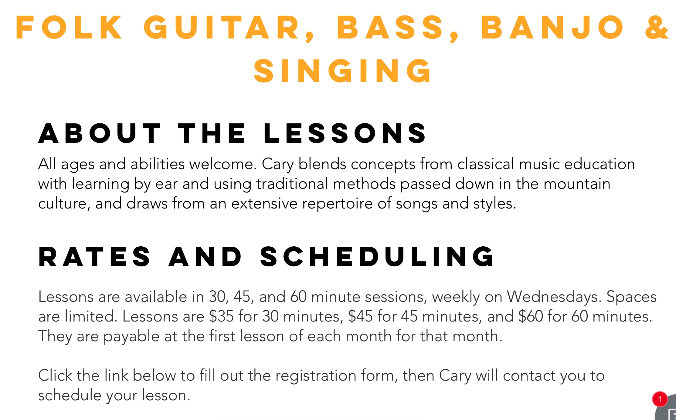 Click here to sign up for lessons with Cary at the Black Mountain Center for the Arts: https://www.blackmountainarts.org/musiclessons